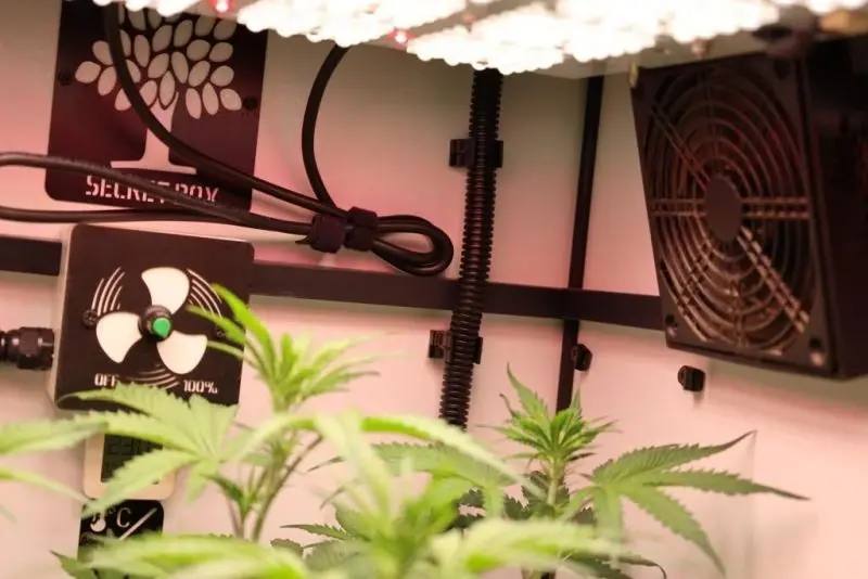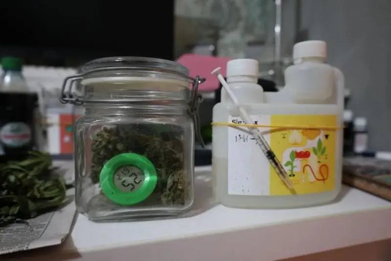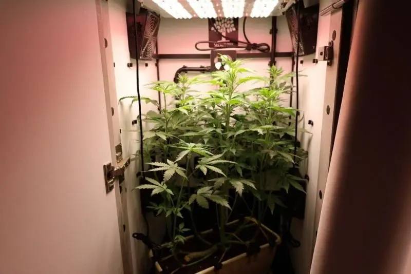 Кроме того, в шкафу с электронным замком, оснащённым лампами дневного света и вентиляцией, полицейские обнаружили горшок с произрастающими кустами конопли. Также в жилище находились удобрения, различные емкости для хранения и приспособления для курения.