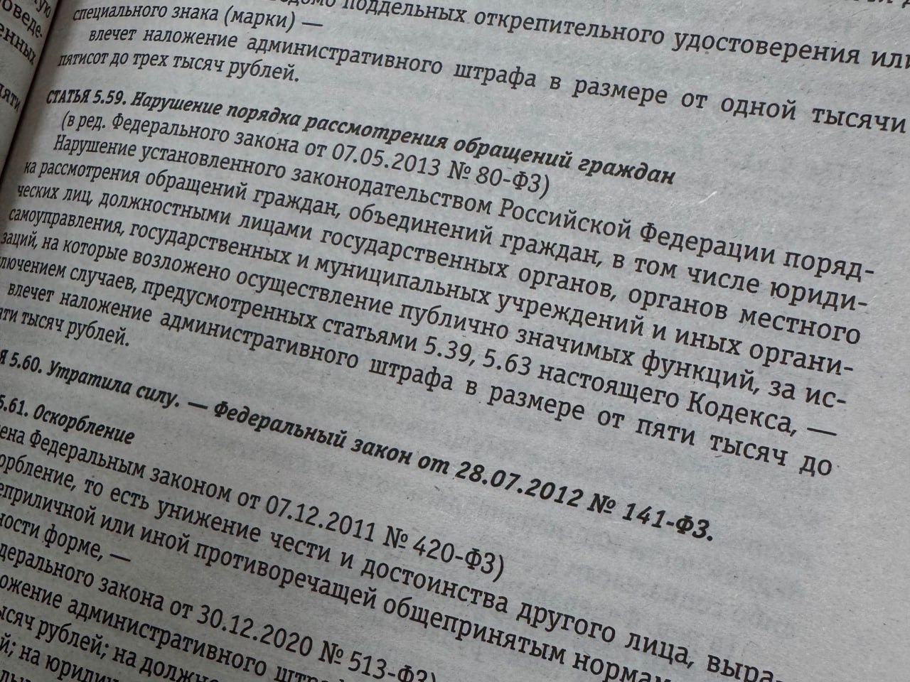 За указанные нарушения закона по постановлению прокурора виновное должностное лицо привлечено к административной ответственности по ст. 5.59 КоАП РФ (нарушение установленного порядка рассмотрения обращений граждан).