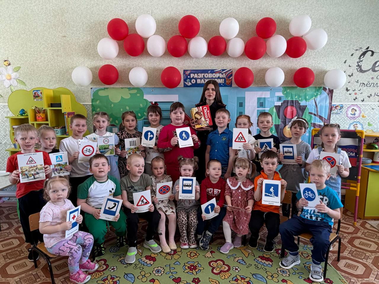 Основной темой беседы стали дорожные знаки . Инспектор в доступной и увлекательной форме рассказала ребятам о значении различных знаков, объяснила, как они помогают нам ориентироваться в дорожной обстановке и обеспечивают безопасность.