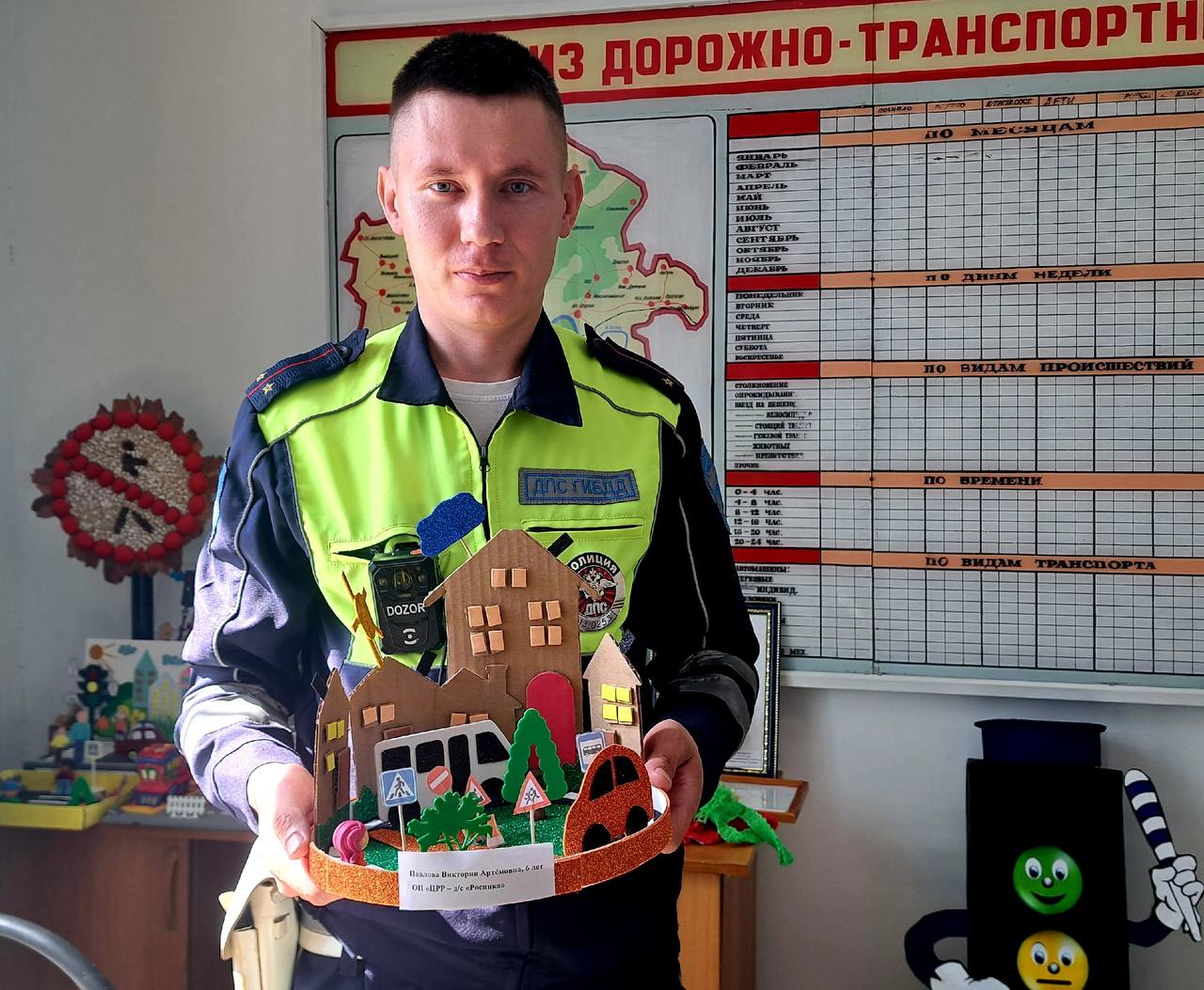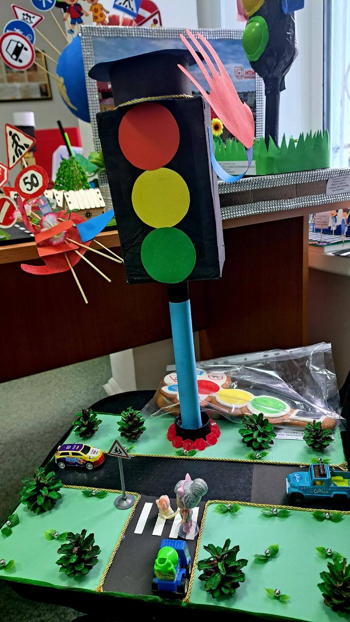 При подведении результатов учитывались уровень демонстрации ПДД и тематической отнесенности, сложность и качество изготовления. Среди представленных работ – оригами, аппликации, поделки-миниатюры, поделки с изображением дорожных ситуаций и даже макет детского сада и площадки возле него.