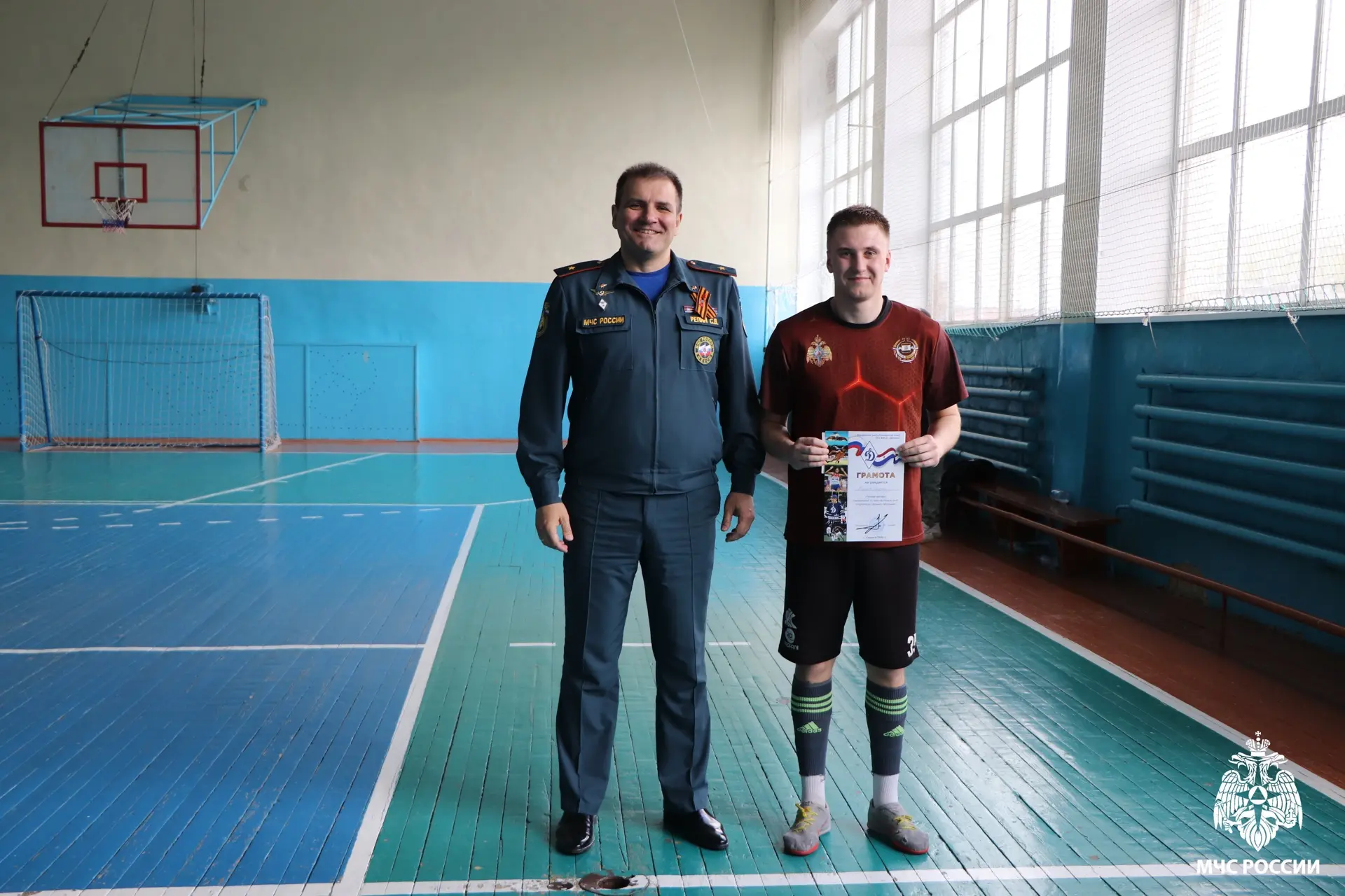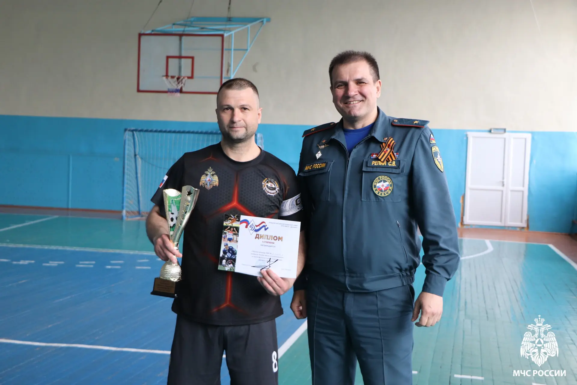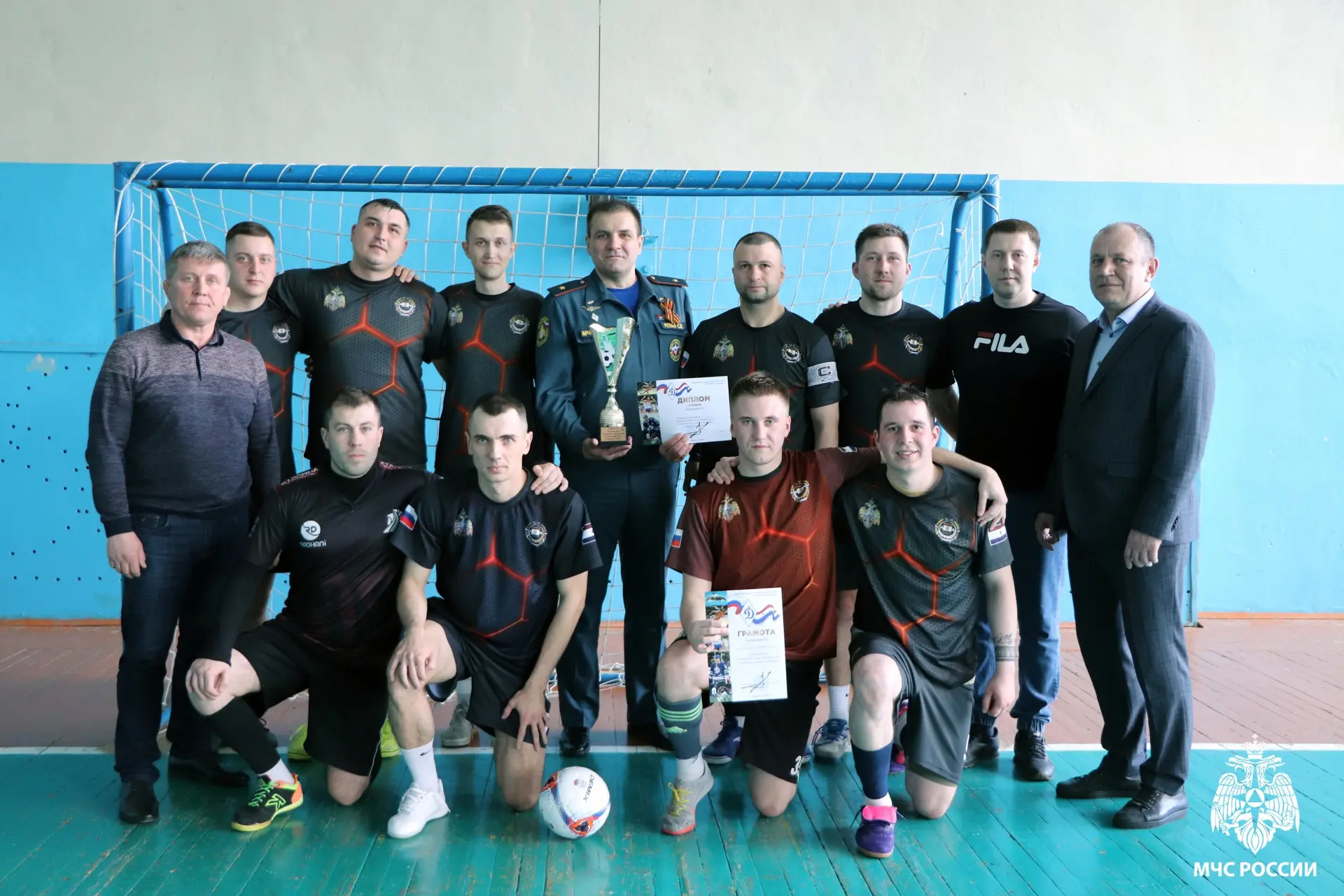 В упорной борьбе наши футболисты заняли 1 место. Лучшим вратарем турнира заслуженно признан участник команды МЧС России Вадим Егоров.