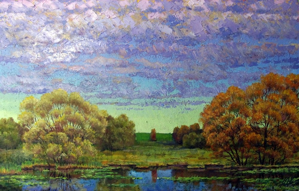 Сквозь закаты, лесные тропинки, цветочные поляны и предрассветные сумерки художник передаёт зрителю свет, тепло и душевное спокойствие.