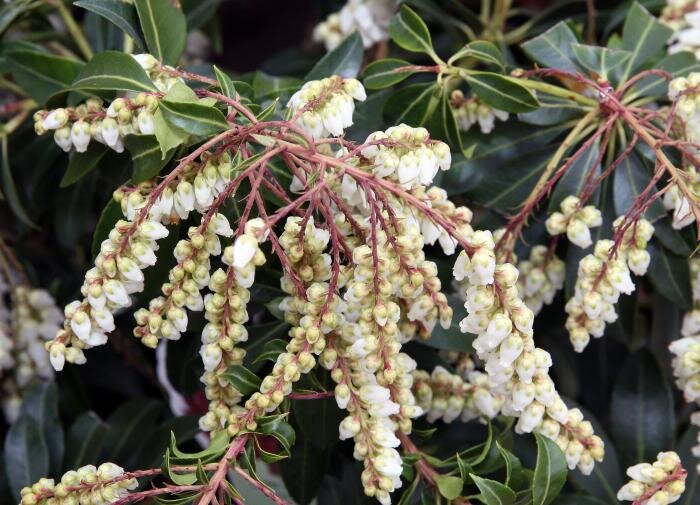 Молодые побеги и верхушки листьев радуют разнообразием ярких оттенков. Уход за пиерисом не сложный, но важно помнить о рыхлом, питательном и влажном грунте с нейтральной кислотностью. Регулярный полив и удобрения станут залогом его здорового роста и пышного цветения. Один из самых популярных видов — японский пиерис, способный выносить морозы до -30°C.