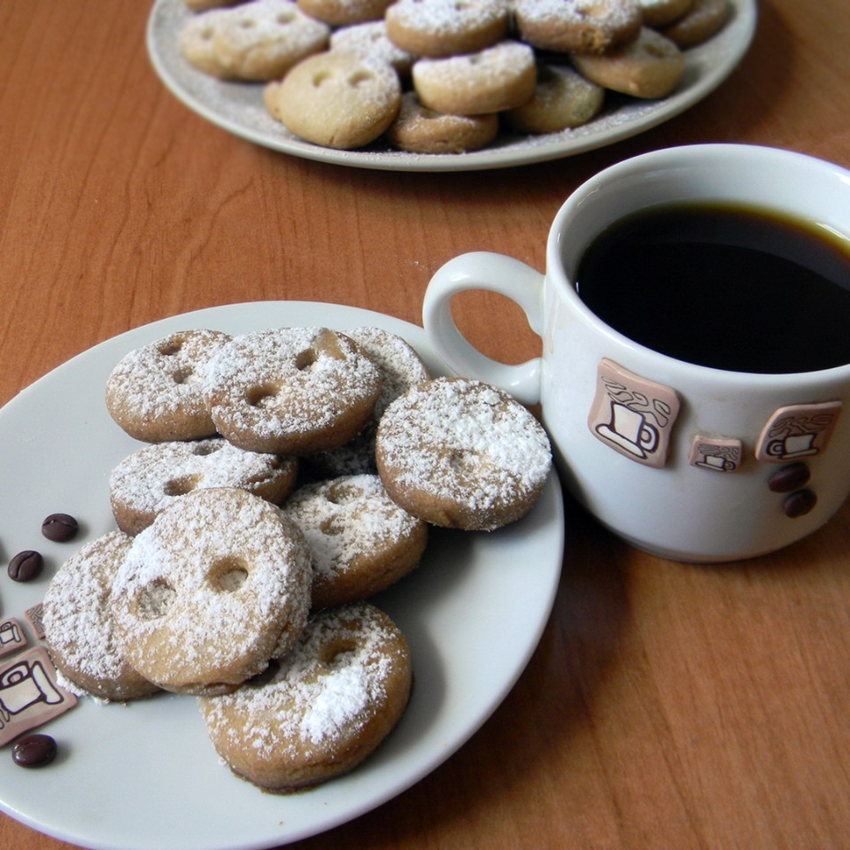 Каждый, кто хотя бы раз делал печенье 'пуговки', навсегда запоминает его тонкий, рассыпчатый вкус. Это печенье ощущается легким и воздушным, вы можете съесть целый килограмм, не заметив этого. Напоминает семечки: хочется остановиться, но не получается. Плюс к этому — вишневый пирожок из того же теста, который просто обязан стать бонусом в вашем десертном меню.