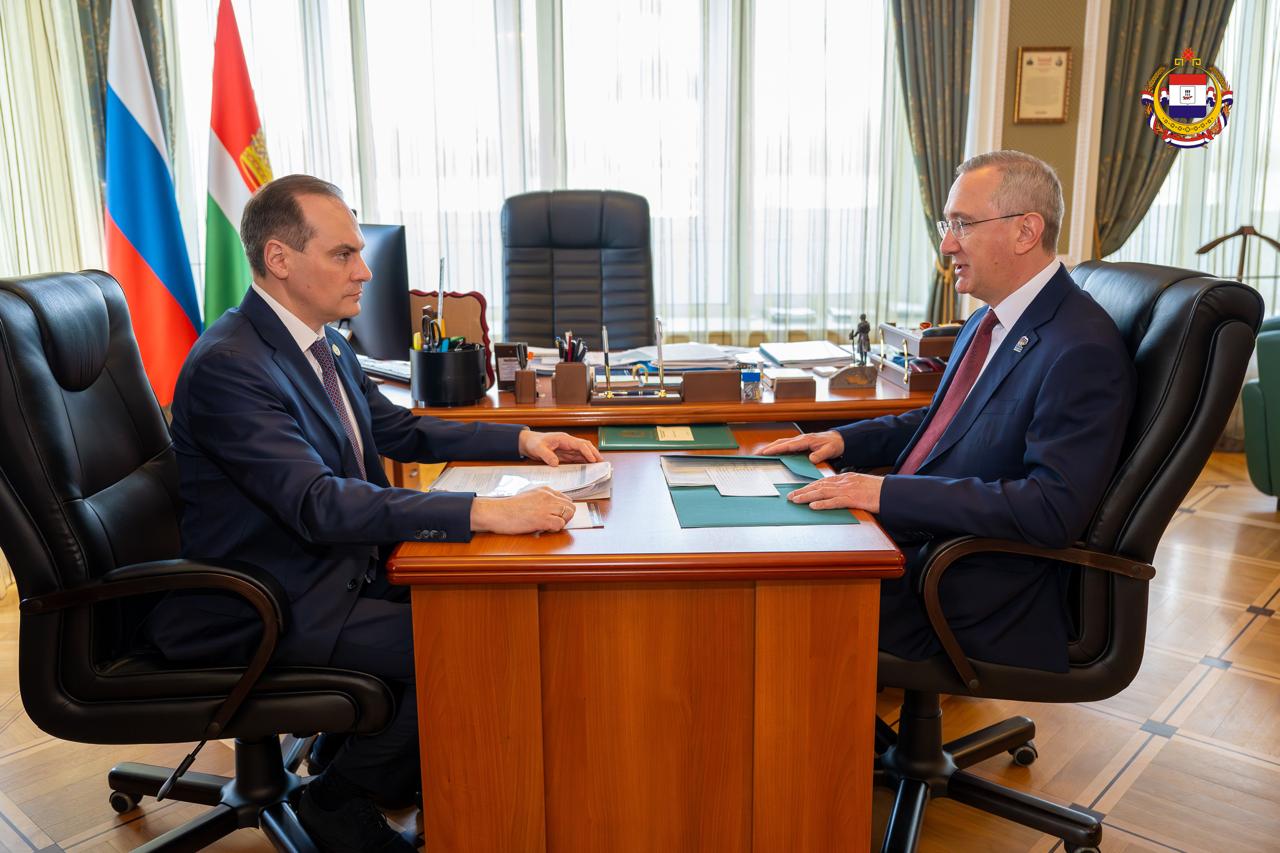 Глава Мордовии Артём Здунов и губернатор Калужской области Владислав Шапша обсудили развитие кооперации в промышленности, сельском хозяйстве и социальной сфере, а также расширение деловых связей между предприятиями.