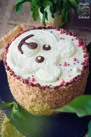 Соберите торт, чередуя коржи и крем, отправьте в холодильник для пропитки. После этого, используя приготовленный крем, декорируйте торт по своему желанию.