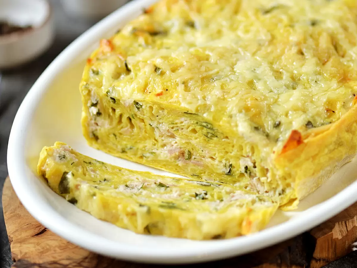 Приготовление этого пирога занимает минимум времени. Лаваш рвётся на кусочки, затем заливается фаршем, смешанным с яйцами и сливками, а сверху посыпается натёртым сыром. После запекания такой пирог приобретает мягкую текстуру, а оставшийся в холодильнике сохраняется свежим в течение нескольких дней. Это отличное решение для быстрого ужина для всей семьи, не требующее особых кулинарных навыков.