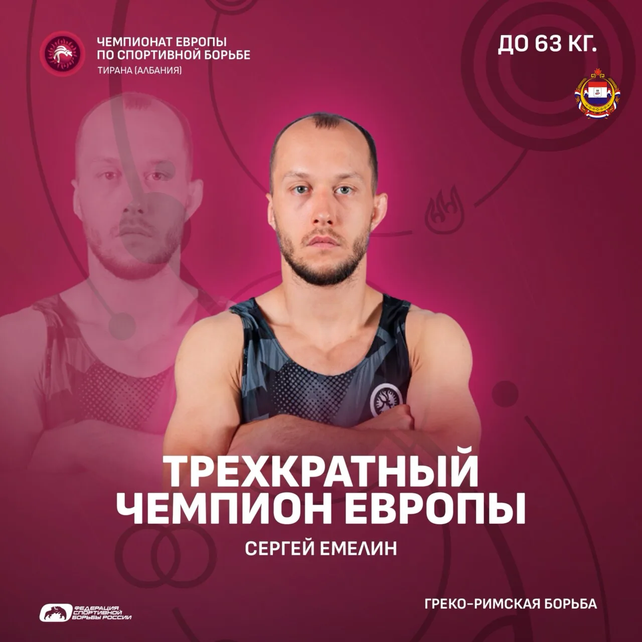 Наш спортсмен, 30-летний борец Сергей Емелин стал победителем чемпионата Европы по греко-римской борьбе в Тиране (Албания) в весовой категории до 63 кг.